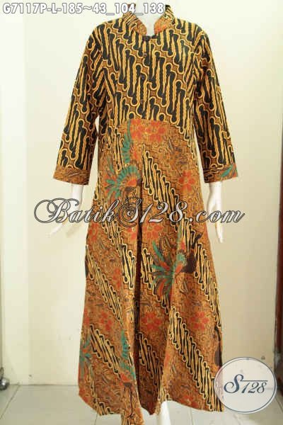 Abaya Batik Elegan Dan Berkelas, Busana Batik Wanita Muslimah, Dress Panjang Batik Untuk Acara Formal Tampil Menawan [G7117P-L]