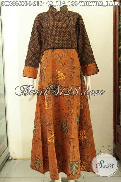 Abaya Batik Kombinasi, Gamis Batik Motif Klasik Truntum Daun Talas Nan Elegan, Baju Batik Muslim Cewek Desain Kekinian Harga 215K [GM8006BT-L]