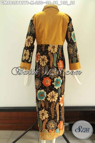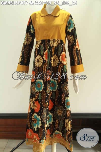 Abaya Batik Model Krah Untuk Wanita Berhijab, Hadir Dengan Bahan Halus Kombinasi Kain Toyobo Dan Di Lengkapi Resleting Depan [GM9835PBTY-M]