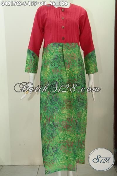 Abaya Batik Warna Merah Kombinasi Hijau Gradasi, Produk Pakaian Batik Perempuan Berhijab Proses Cap Smoke Dengan Model Terkini Yang Bikin Penampilan Lebih Trendy Dan Cantik [G4215CS-S]