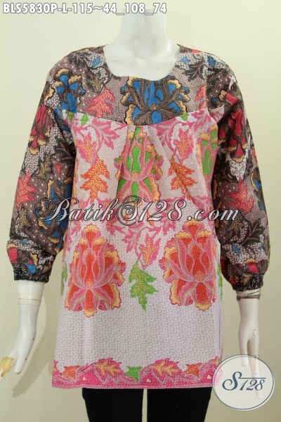 Agen Baju Batik Online Khas Jawa Tengah, Sedia Blus Tanpa Kerah Model Lengan Panjang Dua Warna, Baju Batik Solo Proses Printing Motif Keren Cocok Buat Acara Santai [BLS5830P-L]