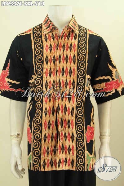Agen Baju Batik Solo Online, Sedia Kemeja Lengan Pendek Big Size Halus Motif Kombinasi Proses Tulis Dengan Dasar Hitam Nan Elegan, Pria Gemuk Makin Tampan [LD9332T-XXL]