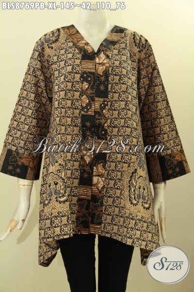 Agen Baju Batik Solo Paling Komplit, Sedia Baju Batik Kerja Nan ELegan Dan Berkelas, Blouse Batik Kutubaru Lengan 7/8 Kwalitas Istimewa Harga Terjangkau [BLS8769PB-XL]