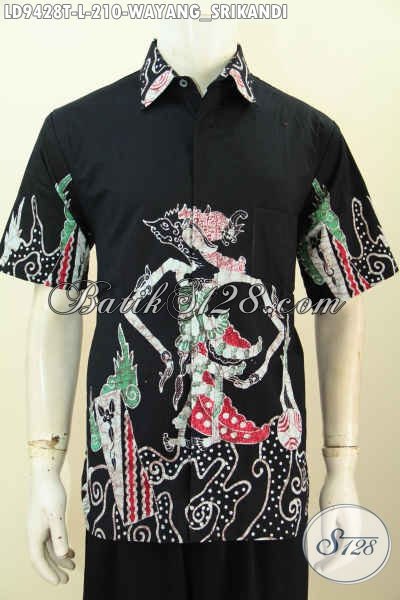 Agen Busana Batik Khas Jawa Tengah, Sedia Kemeja Pria Size L Motif Wayang Srikandi Lengan Pendek Proses Tulis 20 Ribuan [LD9428T-L]