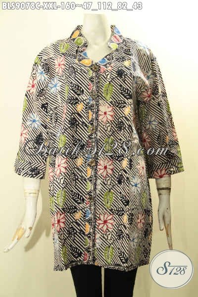 Agen Busana Batik Solo Paling Up To Date, Sedia Blouse Batik Jumbo Lengan 3/4, Baju Batik Keren Kancing Depan Untuk Wanita Gemuk Motif Terbaru Proses Cap Bahan Adem, Cocok Buat Ngantor Dan Pesta [BLS9078C-XXL]