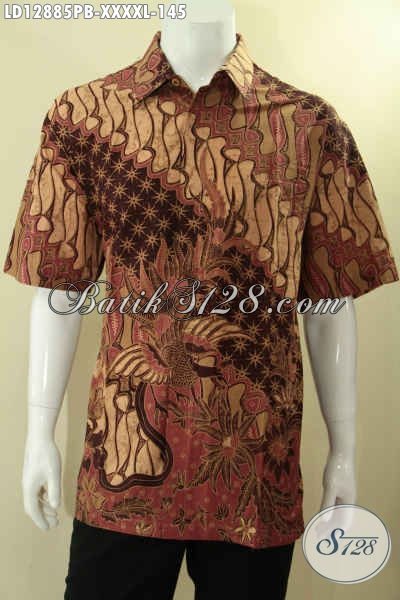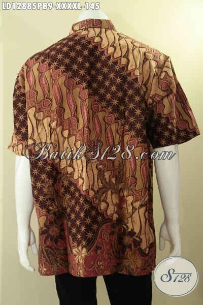Agen Busana Batik Solo Terlengkap Dan Terpercaya, Jual Kemeja Batik Lengan Pendek Spesial Untuk Pria Gemuk Sekali, Baju Batik Halus Motif Elegan Cocok Untuk Seragam Kerja Dan Ke Kondangan [LD12885PB-XXXXL]