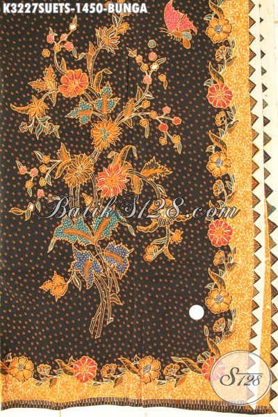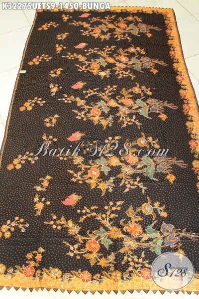 Agen Kain Batik Online Sedia Batik Mewah Bahan Sutra Motif Bunga Proses Tulis Soga, Batik Premium Cocok Untuk Baju Resmi Nan Mewah, Tampil Makin Sempurna [K3227SUETS-240cmx110cm]