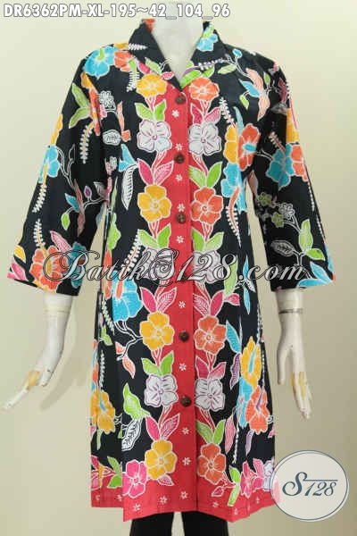 Agen Pakaian Batik Online Terlengkap, Sedia Batik Dress Kerah Langsung Bahan Adem Motif Mewah Kombinasi Tulis Hanya 195K [DR6362PM-XL]