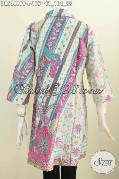 Agen Pakaian Batik Terlengkap Dan Up To Date, Sedia Dress Batik Kerah Bulat Proses Printing Motif Pagi Sore Bahan Adem Kwalitas Istimewa Harga Biasa [DR5382P-L]