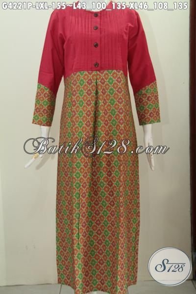 Agen Pakaian Batik Terlengkap Dan Up To Date, Sedia Gamis Batik Merah Motif Bagus Proses Printing Model Terbaru Yang Banyak Di Sukai Hijaber [G4221P-L , XL]
