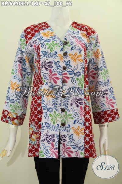 Agen Pakaian Batik Wanita Terlengkap, Jual Online Batik Blus Kerah V Size L Bahan Adem Kombinasi 2 Motif Proses Cap Hanya 100 Ribuan [BLS6430C-L]