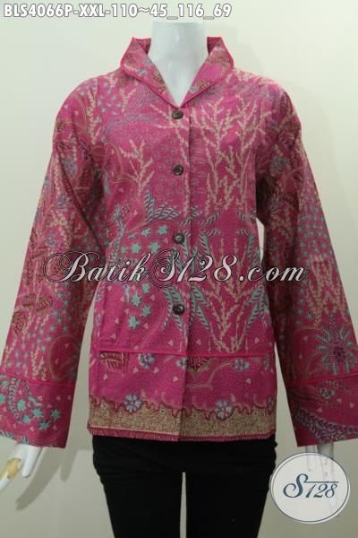 Agen Produk Pakaian Batik Jawa Tengah, Sedia Online Blus Batik Kerah Langsung Plisir Warna Elegan Motif Berkelas Proses Printing Size Jmbo Hanya 100 Ribuan [BLS4066P-XXL]