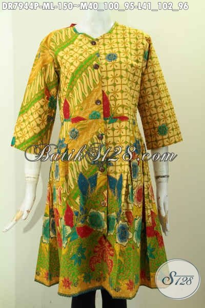 Aneka Baju Batik Cewek Modis Model Terbaru Tanpa Krah Kwalitas Istimewa Motif Klasik Proses Printing, Di Lengkapi Kancing Depan Untuk Kerja Dan Acara Resmi Harga 150K [DR7944P-M , L]