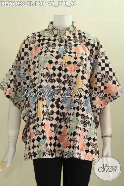 Aneka Baju Batik Cewek Terbaru, Blus Batik Kipas Kerah Shanghai Motif Unik Dan Trendy Proses Cap Bisa Buat Hangout Dan Pesta [BLS5603C-XL]