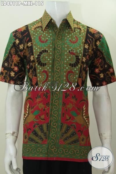 Aneka Baju Batik Lelaki Lengan Pendek Berbahan Halus Proses Printing, Kemeja Batik Solo Motif Mewah Desain Berkelas Pria Tampil Berwibawa [LD4911P-M , XL]