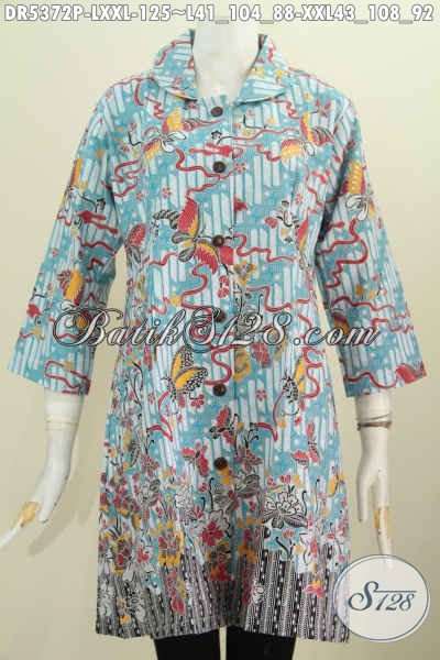 Aneka Baju Batik Untuk Wanita Dewasa, Pakaian Batik Motif Unik Model Kerah Bulat Berbahan Halus Proses Printing Bikin Penampilan Lebih Istimewa Dan Elegan [DR5372P-L , XXL]