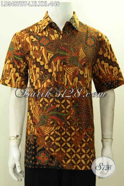 Aneka Batik Kemeja Lengan Pendek Solo Halus, Hem Batik Keren Motif Mewah Kombinasi Tulis, Bisa Buat Ke Kantor Dan Acara Resmi [LD9487BT-L , XL , XXL]