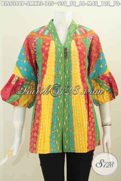 Aneka Busana Batik Blus Model Kartini Dengan Kancing Banyak, Pakaian Batik Modern Klasik Berbahan Halus Motif Keren Proses Printing, Pas Banget Buat Busana Kerja Dan Pesta [BLS5386P-S , M , XL]