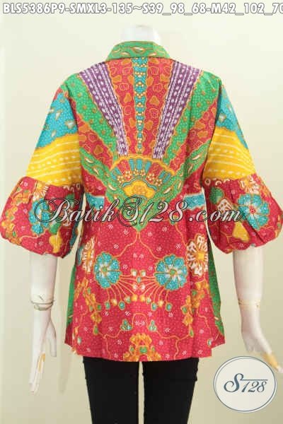 Aneka Busana Batik Blus Model Kartini Dengan Kancing Banyak, Pakaian Batik Modern Klasik Berbahan Halus Motif Keren Proses Printing, Pas Banget Buat Busana Kerja Dan Pesta [BLS5386P-XL]