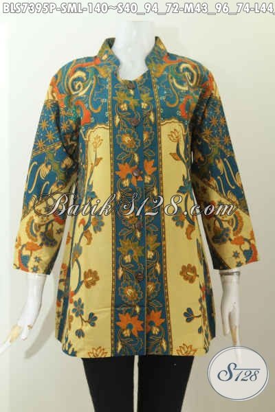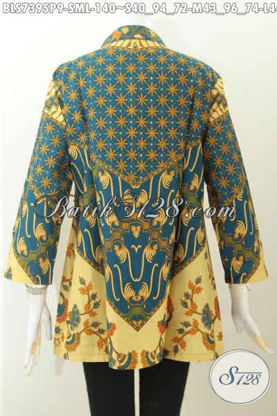 Aneka Busana Batik Formal Nan Elegan Wanita Karir, Blus Batik Kerah Shanghai Motif Sinaran Proses Printing Hanya 140K [BLS7395P-M]