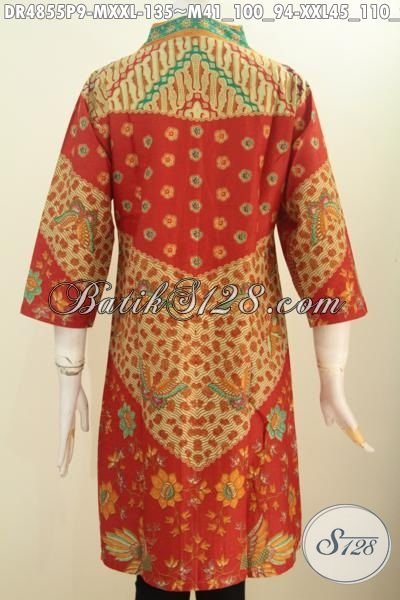 Aneka Busana Batik Klasik Dari Jawa Tengah, Dress Batik Kerah Langsung Berbahan Adem Motif Sinaran Kwalitas Istimewa Desain Kerah Langsung Untuk Penampilan Lebih Gaya Dan Mempesona [DR4855P-XXL]