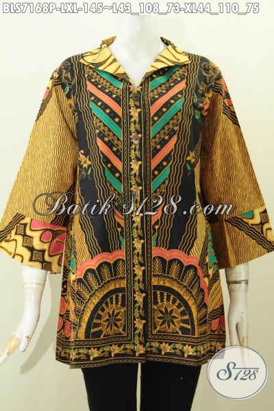 Aneka Busana Batik Wanita Karir, Blus Batik Kerah Langsung Saku Kanan Kiri Kwalitas Istimewa Harga Biasa [BLS7168P-L , XL]