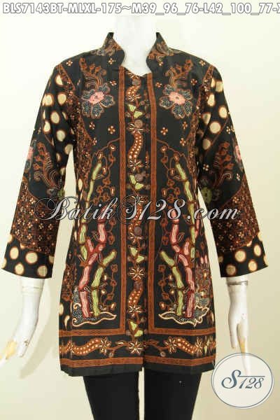 Aneka Busana Batik Wanita Lengan Panjang Motif Sinaran Model Lengan Panjang Kerah Shanghai, Menunjang Penampilan Lebih Berkelas Dan ELegan 175 Ribu [BLS7143BT-M , L , XL]