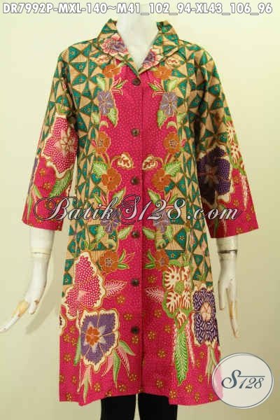 Aneka Busana Batik Wanita Muda Dan Dewasa, Dress Batik Krah Langsung Modis Dan Berkelas Proses Printing Hanya 140K [DR7992P-M , XL]