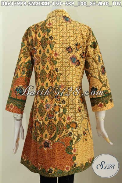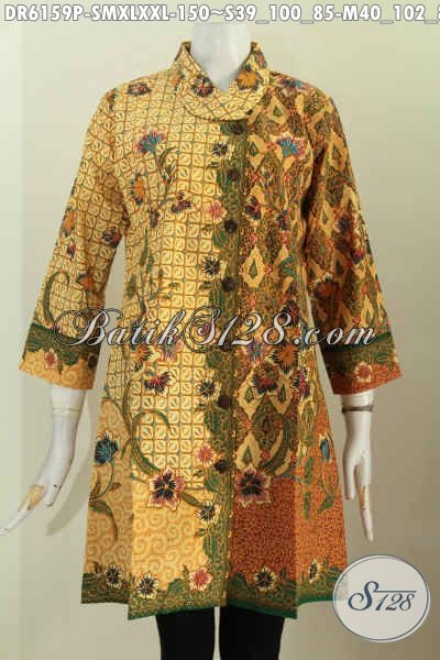 Aneka Busana Batik Wanita Terkini, Dress Batik Halus Kerah Miring Motif Trendy Proses Printing Bikin Penampilan Lebih Istimewa [DR6159P-S , M , XL , XXL]