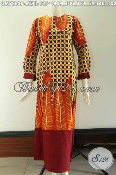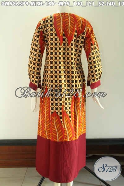 Aneka Busana Gamis Wanita Koleksi Terbaru, Hadir Dengan Motif Modern Nan Elegan Kombinasi Kain Polos, Pakaian Batik Perempuan Berhijab Yang Modis Untuk Kerja Maupun Acara Resmi Hanya 100 Ribuan Saja [GM9863P-M, XL]