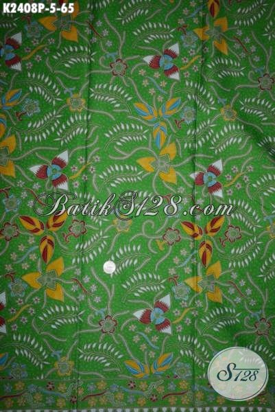 Aneka Kain Batik Keren Buatan Solo Terbaru, Batik Halus Warna Hijau Motif Keren Kwalitas Istimewa Berpadu Motif Trendy Pas Untuk Baju Pesta Dan Seragam Kantor [K2408P-200x105cm]
