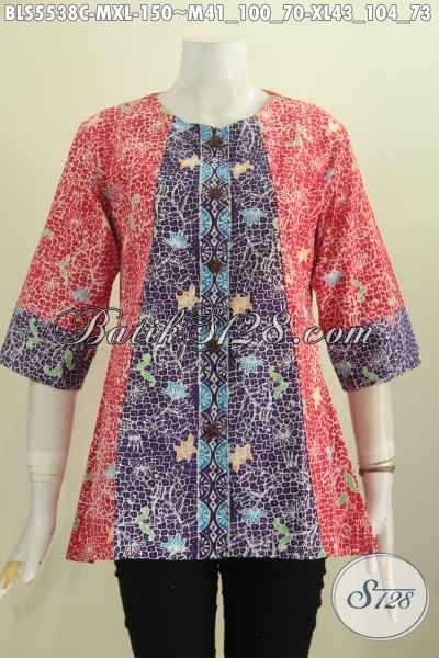 Aneka Pakaian Batik Kerja Desain Modis Dan Trendy, Blus Batik Tanpa Kerah Bahan Kwalitas Bagus Motif Terbaru Berpadu Kombinasi Dua Warna Lebih Berkelas Dan Mewah Proses Cap [BLS5538C-M , XL]