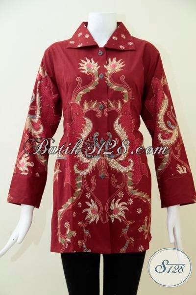 Aneka Pakaian Batik Seragam Kerja Wanita Kantoran, Baju Batik Model Blus Merah Motif Modern Mewah Dan Trendy [BLS1570T-XL]
