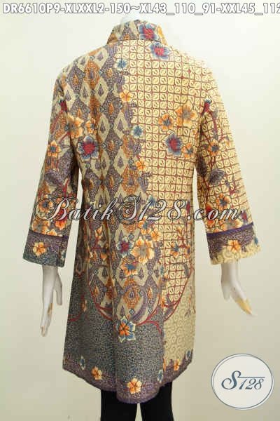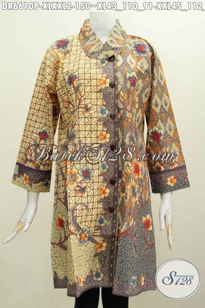 Aneka Pakaian Batik Wanita Dewasa, Busana Batik Model Kerah Miring Terbaru Motif Kombinasi Bahan Adem Proses Printing, Pas Buat Acara Formal [DR6610P-XL , XXL]