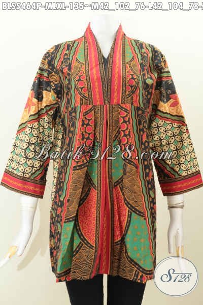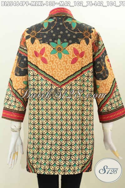 Aneka Pakaian Batik Wanita Karir Model Tanpa Kerah, Baju Blus Motif Klasik Proses Printing Buatan SoloYang Mampu Bikin Penampilan Terihat Istimewa [BLS5464P-M , XL]