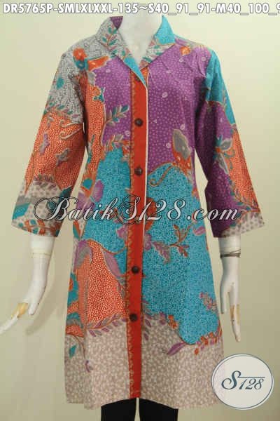 Aneka Pakaian Batik Wanita Terkini, Baju Batik Kerah Langsung Model Dress Motif Pagi Sore Untuk Kerja Tampil Lebih Cantik Dan Istimewa [DR5765P-S , XL]