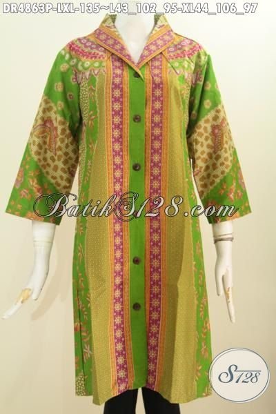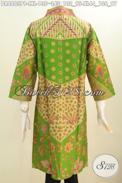 Aneka Produk Batik Wanita Dewasa Terkini, Baju Dress Batik Klasik Elegan Nan Mewah Berbahan Halus Motif Sinaran Model Kerah Langsung Proses Printing Yang Bikin Wanita Lebih Mempesona [DR4863P-L , XL]