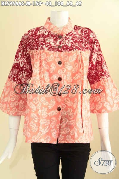 Atasan Batik Wanita Model Kerah Shanghai 2 Motif Lengan 7/8 Di Lengkapi Kancing Depan, Modis Buat Ngantor Dan Hangout [BLS9566C-M]