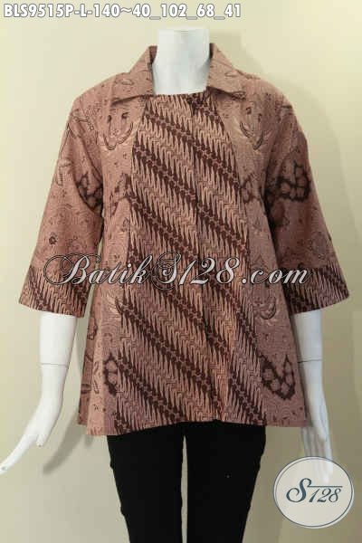 Atasan Batik Wanita Model Krah Lengan 7/8, Pakaian Batik Modis Kombinasi 2 Motif Elegan Dan Di Lengkapi Kancing Depan, Pilihan Terbaik Untuk Tampil Cantik Menawan [BLS9515P-L]