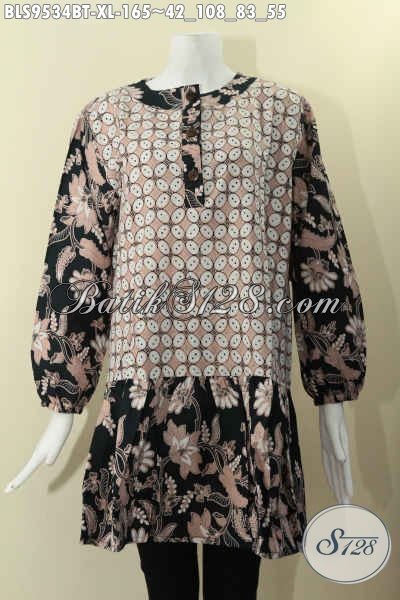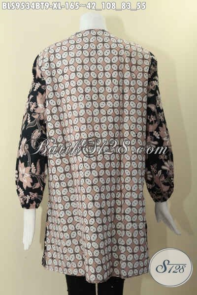 Atasan Batik Wanita Modis Untuk Kerja Tampil Cantik Berkelas, Hadir Dengan Desain Kerah Paspol, Kancing Depan, 2 Motif Dan Lengan Panjang Berkaret [BLS9534BT-XL]