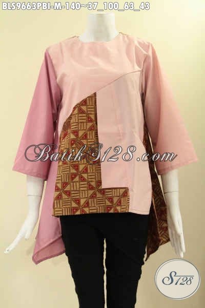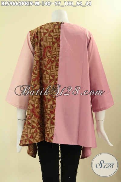 Atasan Batik Wanita Nan Trendy Dengan Kombinasi Kain Polos Katun Ima Nan Halus Dan Nyaman Di Pakai, Baju Batik Model Tanpa Krah Di Lengkapi Kancing Belakang Dan Lengan 3/4 [BLS9663PBI-M]