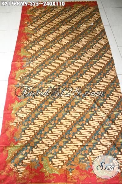 Bahan Baju Batik Berkwalitas Bagus Buatan Solo, Batik Jawa Klasik Motif Parang Bunga Dengan Warna Mewah Bahan Pakaian Formal Untuk Kerja Dan Pesta [K2176PM-240×110 cm]