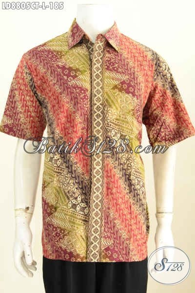 Baitk Hem ELegan Lengan Pendek, Busana Batik Solo Halus Bahan Adem Proses Cap Tulis Untuk Kerja Dan Acara Resmi Tampil Mempesona [LD8805CT-L]