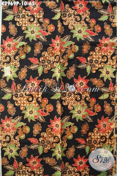 Baitk Printing Halus Motif Bunga Bahan Busana Wanita Blus Maupun Dress, Batik ELegan Dasar Hitam Buatan Solo Harga Terjangkau [K2969P-200x110cm]
