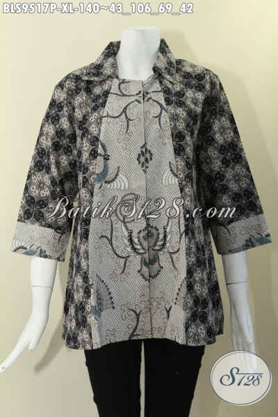 Baju Atasan Batik Wanita Model Terbaru 2 Motif Desain Krah Lengan 7/8 Kancing Depan, Bahan Halus Adem Dan Nyaman Di Pakai Harian [BLS9517P-XL]