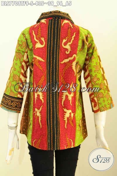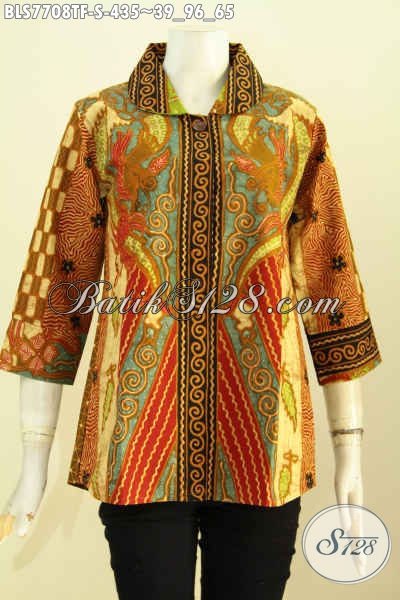 Baju Atasan Batik Wanita Terbaru, Busana Batik Istimewa Desain Elegan Motif Sinaran Proses Tulis Daleman Full Tricot Harga 400 Ribuan [BLS7708TF-S]
