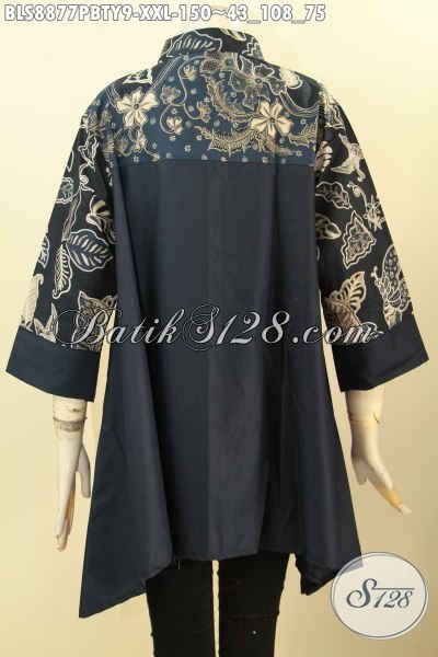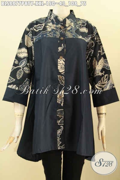 Baju Atasan Batik Wanita Terbaru, Pakaian Batik Istimewa Bahan Halus Kombinasi Katun Polos Toyobo Desain Kerah Shanghai Motif Terkini Proses Printing Hanya 150K [BLS8877PBTY-XXL]