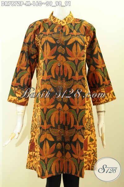 Baju Baitk Wanita Muda, Dress Batik Modis Halus Kombinasi 2 Motif Model Krah Shanghai, Cocok Untuk Acara Rresmi [DR7872P-M]