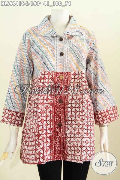 Baju Batik 2 Motif, Pakaian Batik 2 Warna, Baju Batik Wanita Terbaik Bahan Halus Proses Cap Kerah Bulat Hanya 160K [BLS6841C-L]