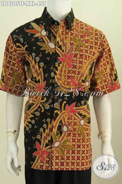 Baju Batik 3L, Hem Batik Jumbo Pria Terkini Bahan Halus Motif Istimewa Daleman Full Furing Model Lengan Pendek Cocok Untuk Lelaki Gemuk [LD7505TF-XXL]